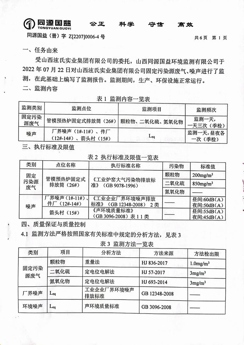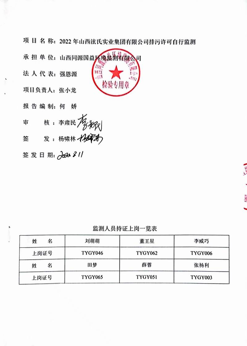 山西泫氏2022年3季度监测报告